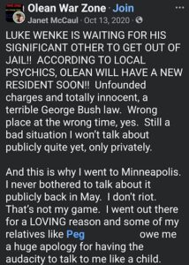The following three screenshots contain text messages I received from Luke Wenke in the spring of 2021, followed by my response. I knew it was Luke Wenke because he’s the only person I know who continued to fixate on the now-defunct message board website Topix for years after it had shut down (and still obsesses over to this day). Wenke is well-known throughout Salamanca and Olean as a prolific and widely-despised troll who made it his personal mission to ruin lives by spreading malicious rumors on Topix.