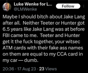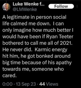 luke wenke x twitter screenshot benjamin ryan teeter obsession false allegations HIPAA violations 2025