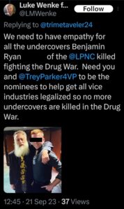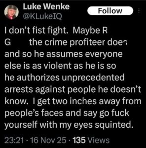 luke wenke x twitter screenshot antipolice antigovernment 2025