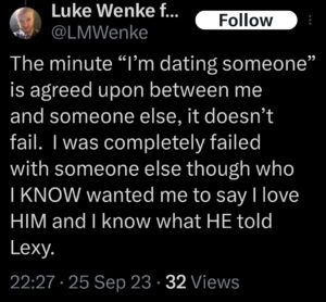luke wenke katie obsession tweet twitter x screenshot 2023